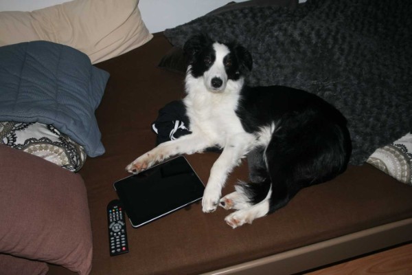 Klaus hat Loki erwischt - wenn Frauchen arbeitet "surft" Loki oder schaut Fernsehen :-)