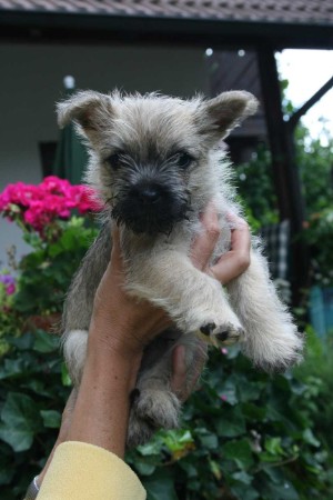 Sein Vater ist angekört und Deutscher Champion im KFT, seine Mutter hat die VDH-Begleithundeprüfung erfolgreich abgelegt und startet im Agility-Sport. Beide Elternteile sind Patellaluxations-frei. "Crash" hat eine VDH/KFT-Ahnentafel, ist gechippt, mehrmals entwurmt, komplett d. h. für ein Jahr (durchge-)impft und bekommt umfangreiches Zubehör mit in sein neues Zuhause. Bei der Begutachtung des Wurfes durch unseren KFT-Zuchtwart, war "Crash" ohne Beanstandung. Zur Sozialisierung geht er mit mir in die Welpenstunde unseres Hundevereins. "Crash" ist so gut wie stubenrein und super über seinem Namen abrufbar. Er ist derzeit bei uns im Cairn-Rudel voll integriert und wäre bestimmt auch ein "super Zweithund" ! Er ist wirklich ein kleiner "Traum-Cairn-Terrier" - der bisher noch keinen Platz gefunden hatte, weil er leider wohl keine Hündin war :-(.